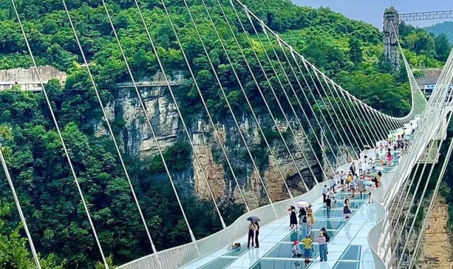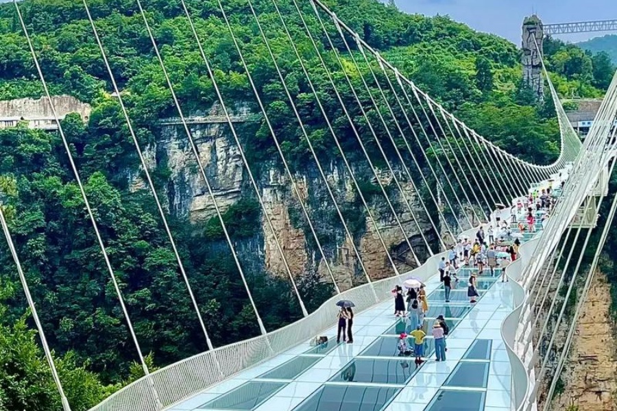 대협곡에는 세계에서 가장 높고 긴 투명 유리다리가 있어요. 길이 430m, 협곡 사이 높이 300m의 유리다리를 건너며 아찔한 스릴과 함께 장가계의 웅장한 풍경을 한눈에 담아보세요! 잊지 못할 풍경과 추억이 가득한 여행이 될 거예요.