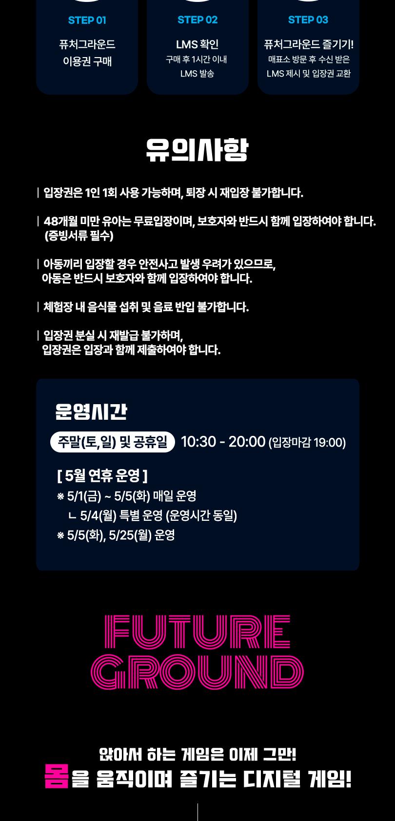강원도 속초, 설악 워터피아에 특별한 놀이터가 열렸어요! 빛,소리,움직임이 모두 상호작용하는 공간, 퓨처그라운드에서 색다른 디지털 체험을 즐겨보세요. 아이들은 온몸으로 뛰어놀고, 어른들도 빠져드는 인터랙티브 공간 속에서 감각이 깨어나는 몰입 경험과 함께 놀이와 예술, 기술이 하나되는 새로운 세계를 만나게 돼요.