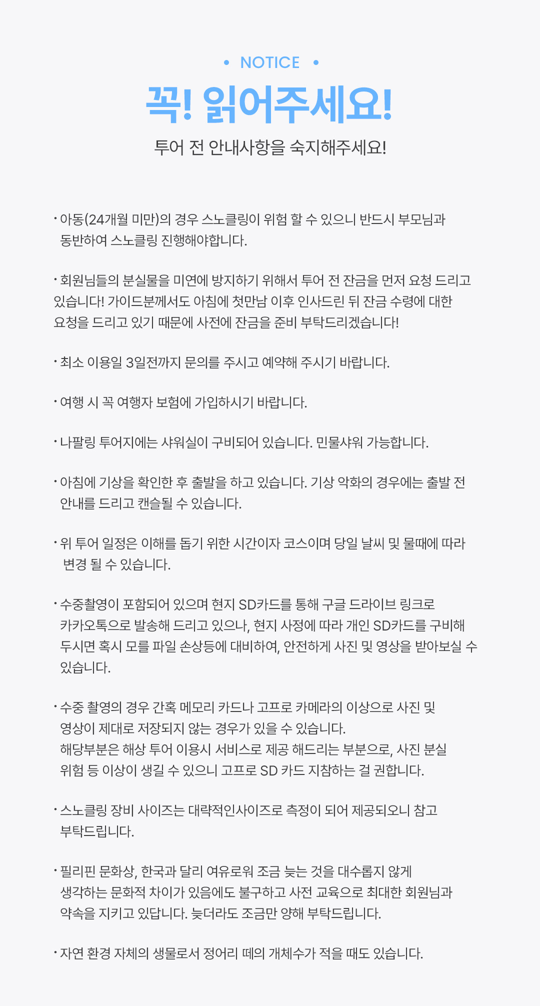 * 투어 1~2일전 각 픽업지별 정확한 픽업시간 별도 안내드립니다.