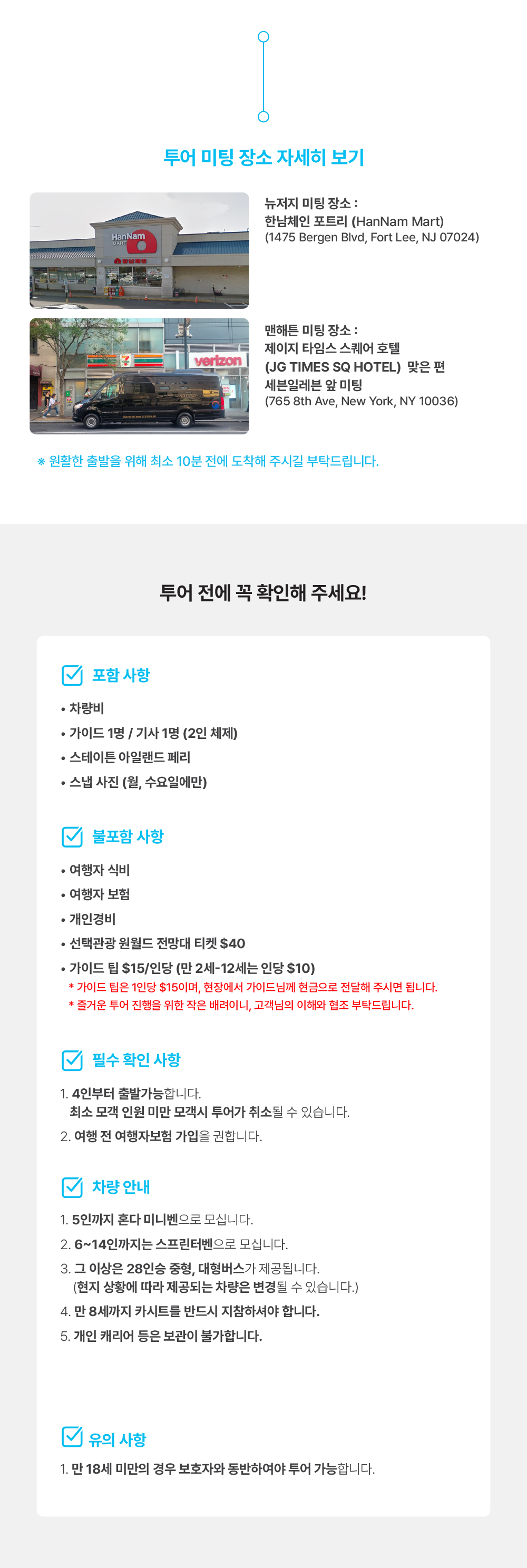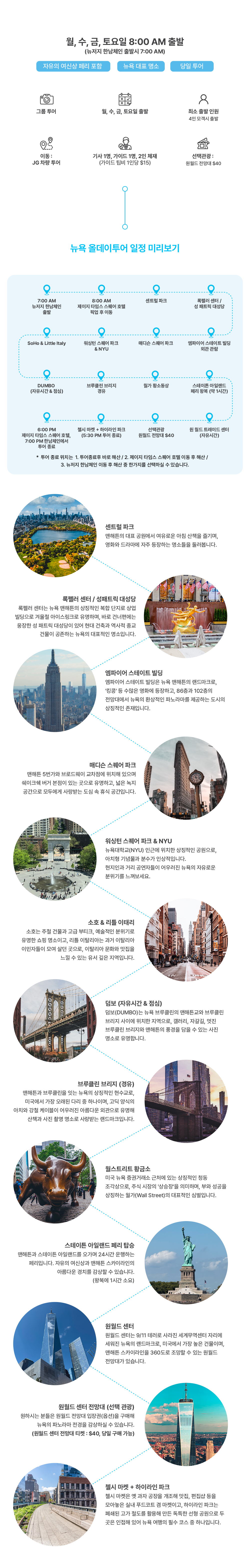 복잡한 뉴욕의 대중교통과 길 찾기 걱정 없이, 전용 차량으로 편안하게 핵심 명소만 둘러보고 싶으신 분들을 위한 최고의 선택이에요.
