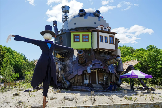 하울의 움직이는 성의 웅장한 성이 눈앞에 펼쳐지고, 키키의 배달집이 실제 크기로 재현되어 있어요. 길을 따라 걷다 보면 고양이 지지의 발자국이 남아 있는 듯한 감성적인 디테일도 곳곳에서 발견할 수 있답니다.