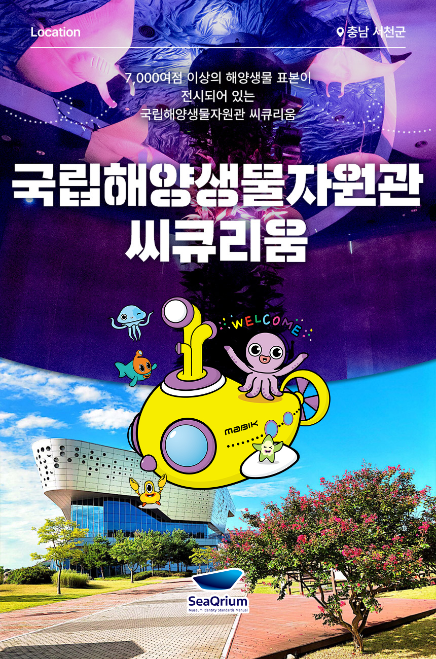 충남 서천에 위치한 국립해양생물자원관은 바다를 사랑하는 모든 이들에게 열린 해양 생명의 세계예요. 이곳의 전시관 ‘씨큐리움(SeaQrium)’은 이름처럼 SEA(바다) + Question(질문) + Rium(공간)의 합성어로, ‘바다에 대한 호기심을 가지고 질문을 던지며 해답을 찾아가는 공간’을 의미합니다. 🌊