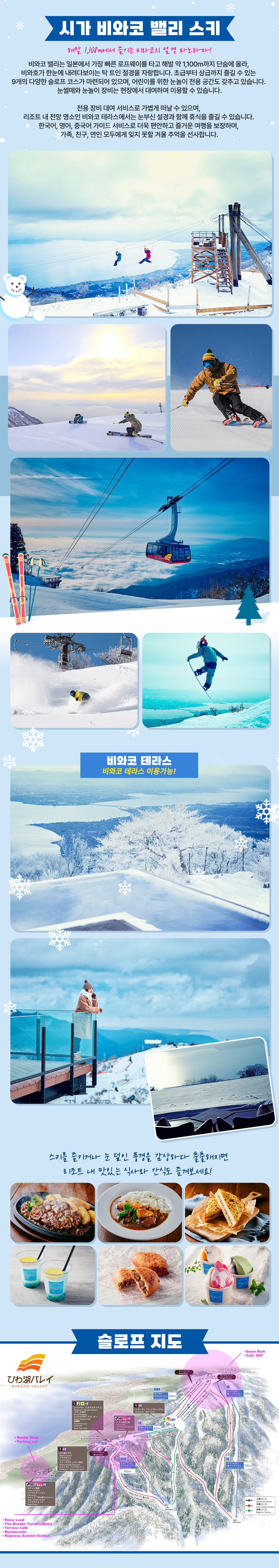 전용 왕복 버스를 타고 편안하게 이동하며, 스키와 눈썰매를 포함한 다양한 패키지 옵션으로 누구나 부담 없이 즐길 수 있어요. 로프웨이를 타고 해발 약 1,100m 정상에 오르면, 눈부신 비와호가 한눈에 펼쳐지는 장관을 볼 수 있어요. 맑고 차가운 공기 속에서 반짝이는 설원을 바라보고 있으면, 잠시 숨이 멎을 듯한 감동이 찾아와요. 비와코 밸리 스키장은 초보자부터 상급자까지 모두가 즐길 수 있는 다채로운 슬로프가 마련되어 있고, 아이들을 위한 눈놀이 공간도 갖추고 있어서 가족과 함께하기에도 완벽해요.