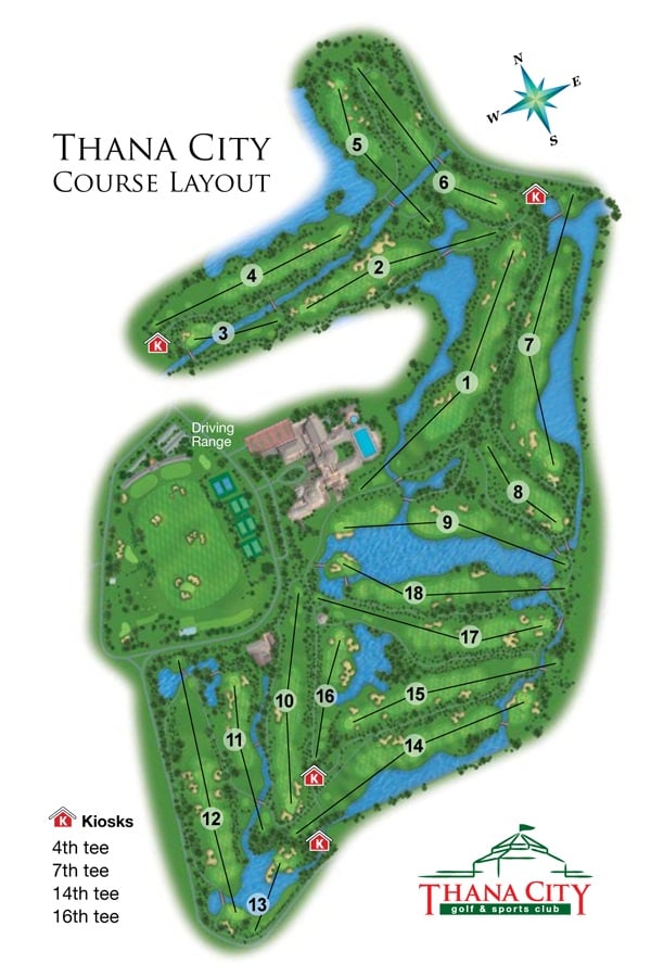 타나 시티 컨트리 클럽은 균형 잡힌 18홀 코스로, 넓은 페어웨이와 정교한 그린이 조화를 이루는 것이 특징이에요. 코스 전반에 걸쳐 워터 해저드와 벙커가 전략적으로 배치되어 있어 단순한 거리 공략뿐 아니라 정확한 샷 컨트롤이 중요하답니다. 버뮤다 잔디 특유의 탄탄한 질감 덕분에 안정적인 타격감을 느낄 수 있으며, 빠른 그린은 퍼팅 시 세밀한 터치를 요구해요. 초보자는 여유롭게 라운딩을 즐길 수 있고, 숙련자에게는 전략적인 플레이의 재미를 선사해 한 라운드 내내 집중과 도전을 동시에 경험할 수 있는 코스예요.