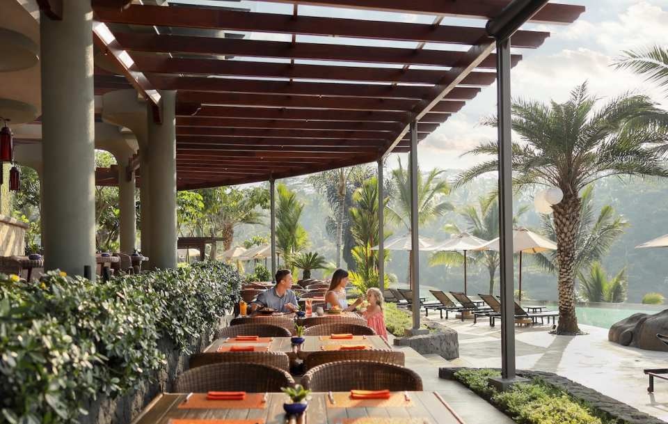 무성한 열대 계곡의 숨 막히는 180도 전망과 우아한 분위기가 모든 식사 순간을 더욱 돋보이게 해요.