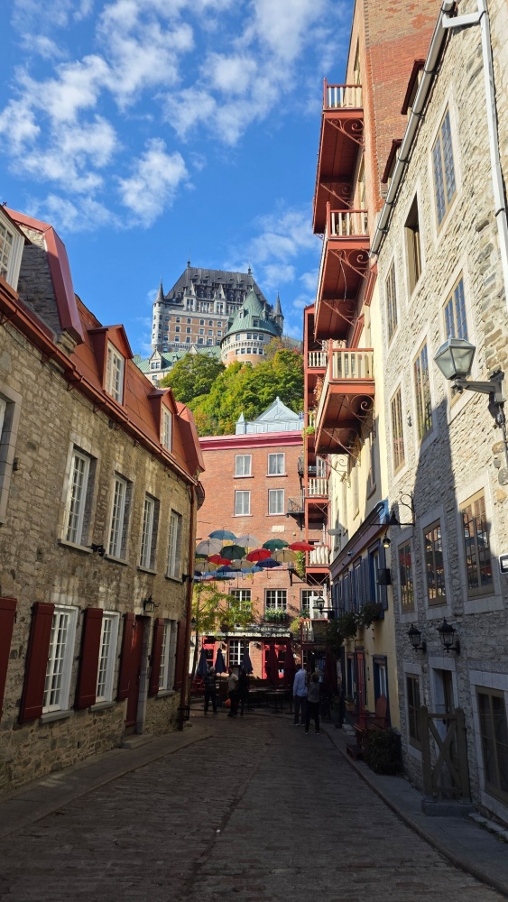 회색 석조 건물과 아기자기한 상점들이 이어진 올드퀘벡의 대표 골목길 지역이에요.