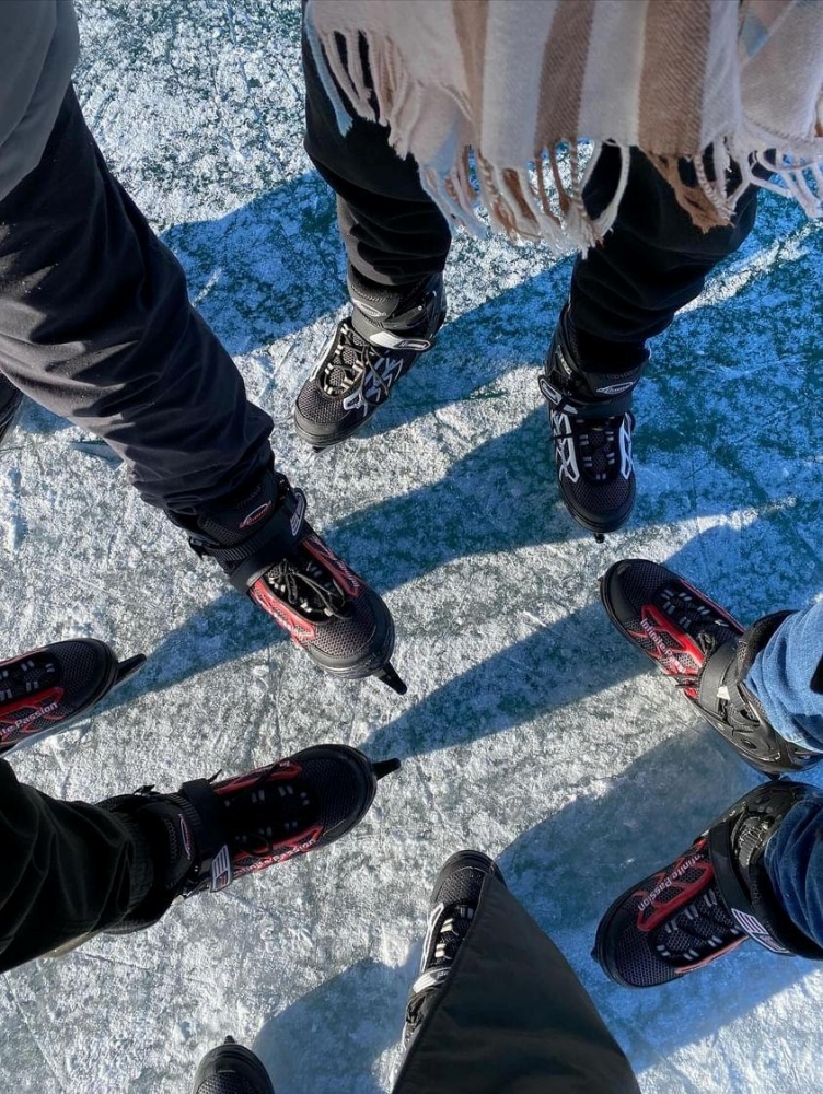 얼어붙은 호수 위에서 포르공 썰매와 스케이트 등 겨울 액티비티를 즐겨요.