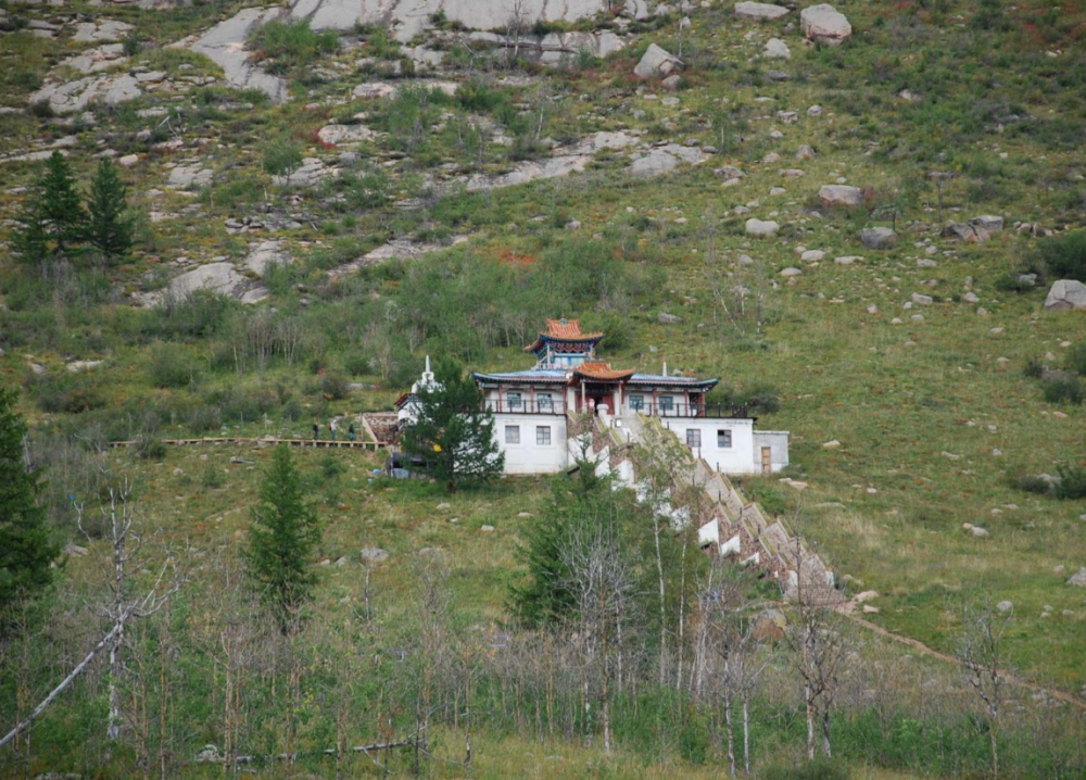초원과 산이 어우러진 전망 속에서 몽골 불교 문화를 느껴요.