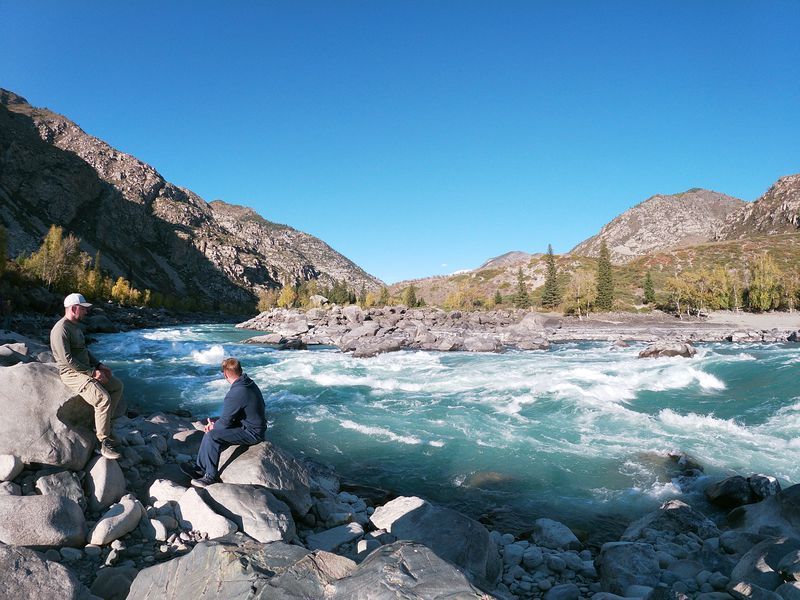 강을 따라 산책하며 서몽골의 평온한 자연을 만나요.