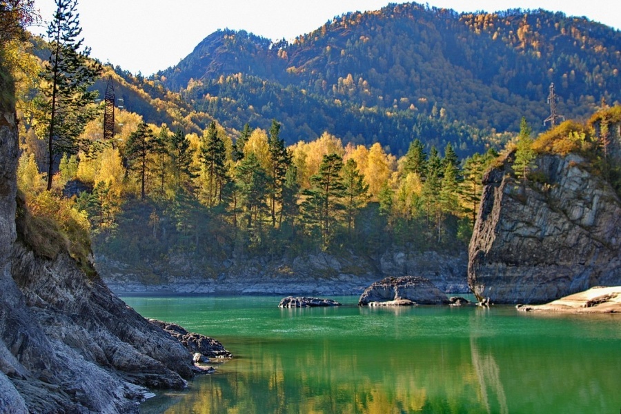 고요한 호수 풍경 속에서 알타이 특유의 분위기를 느껴요.