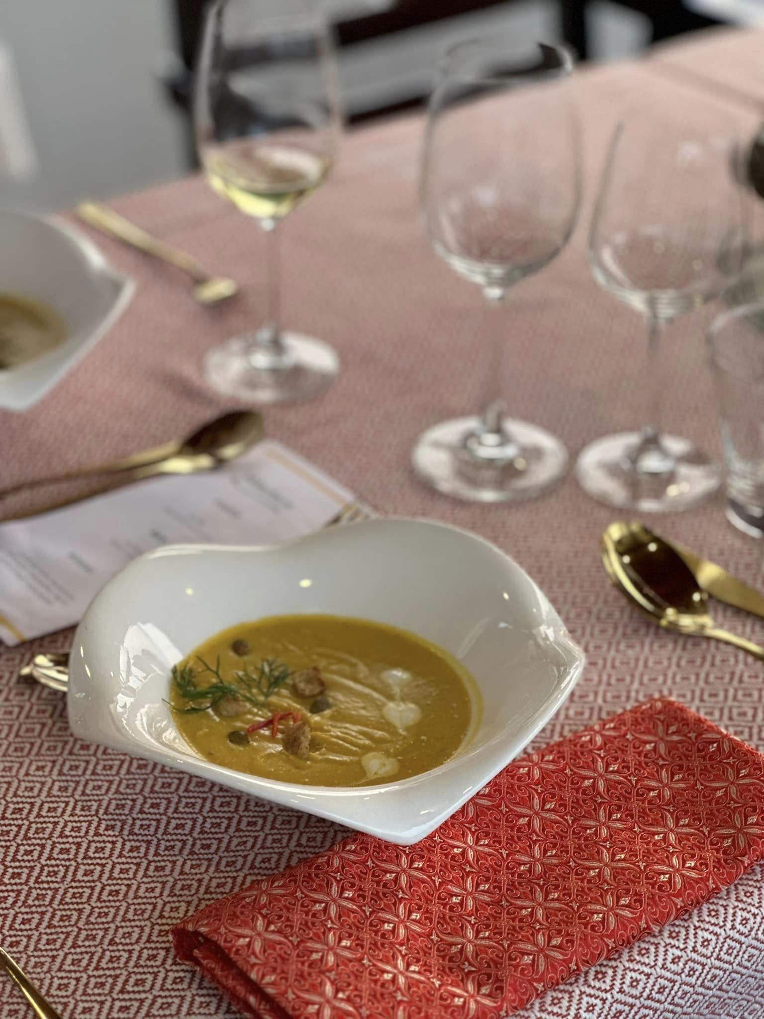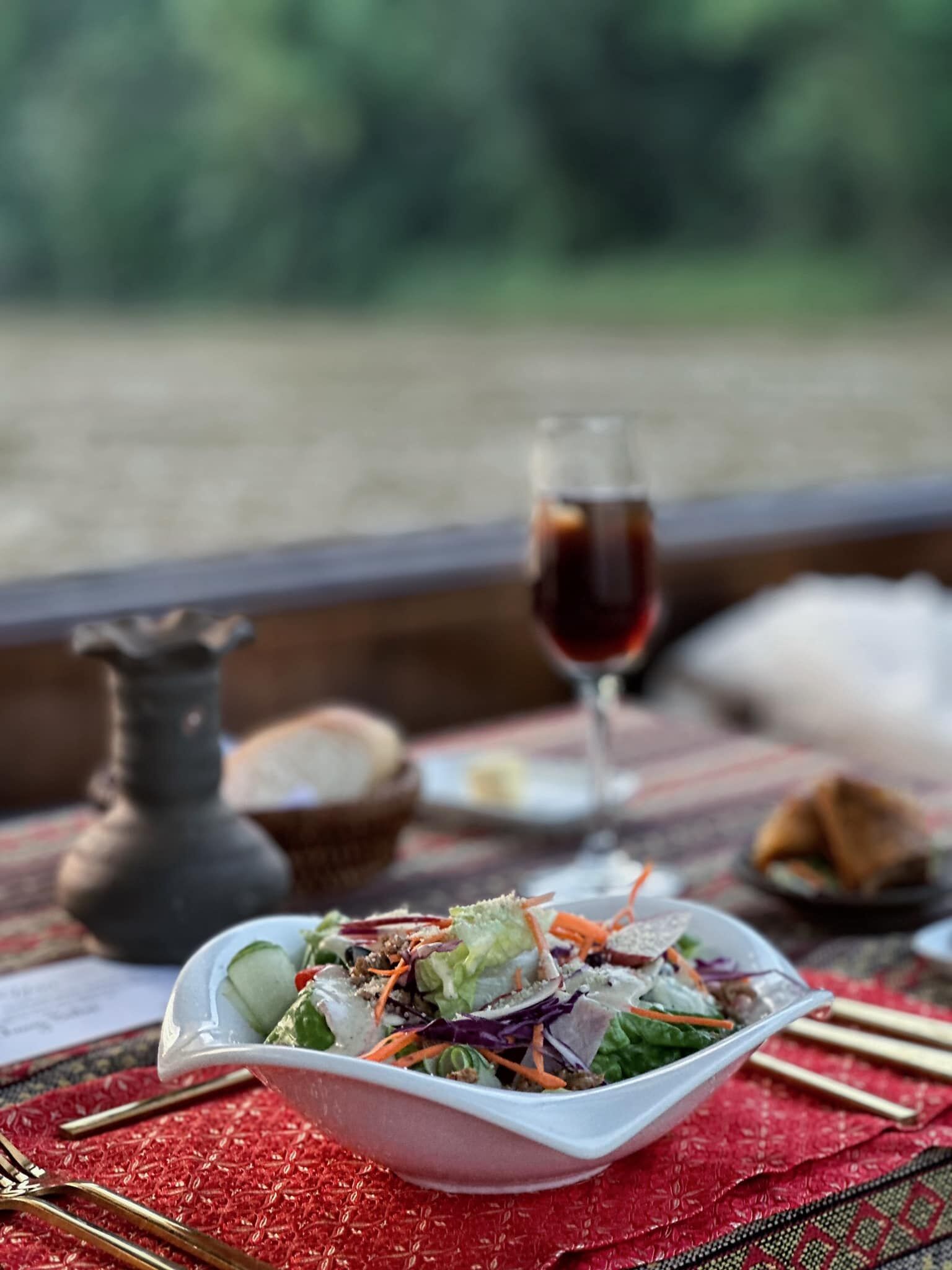 선셋 크루즈 디너는 양식 또는 라오스식 중 선택 가능해요. 일반적으로는 양식 메뉴를 많이 선택하시는 편이에요. 아래 메뉴는 예시이며, 디너 메뉴는 매일 변경돼요.