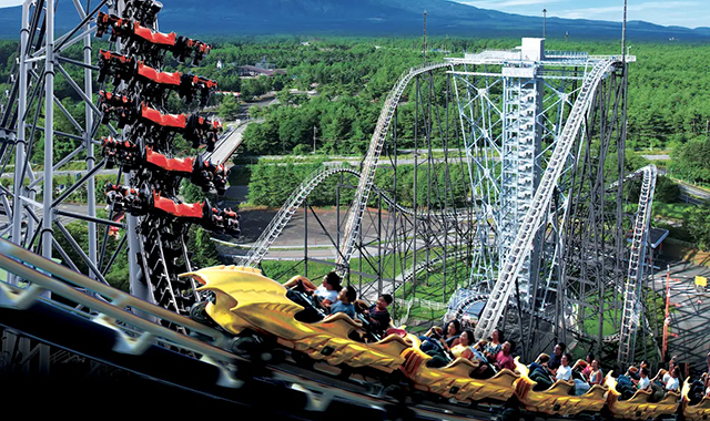 일본에서 가장 빠른 롤러코스터로 엄청난 가속도가 장점이에요. 출발 1.56초만에 시속 180km까지 질주해요.