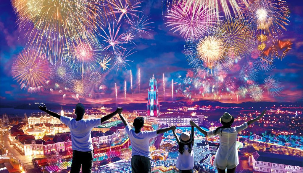 하우스텐보스에서는 시즌 내내 스페셜 불꽃축제가 열려요! 일정 확인은 여기에서 가능해요.