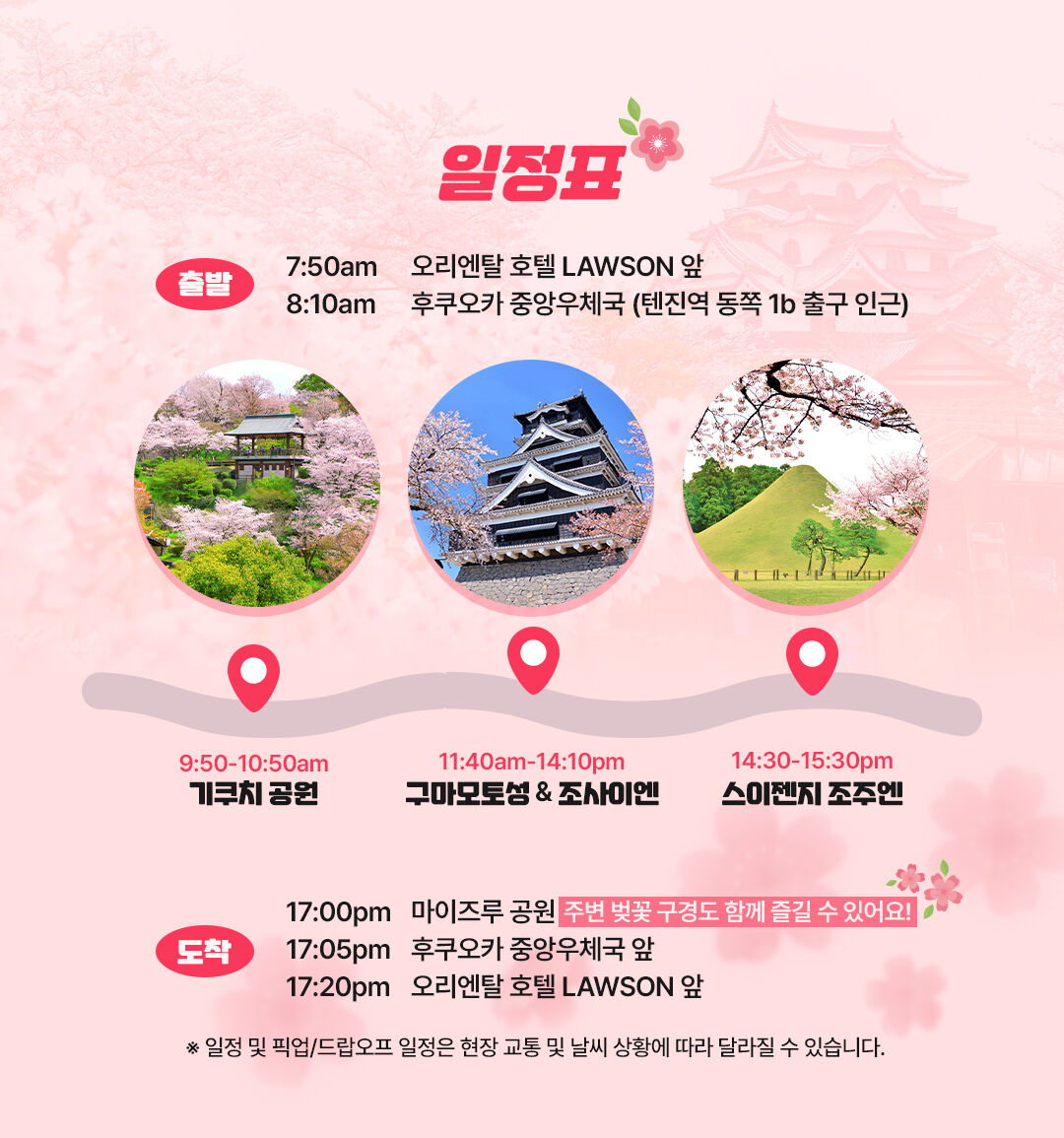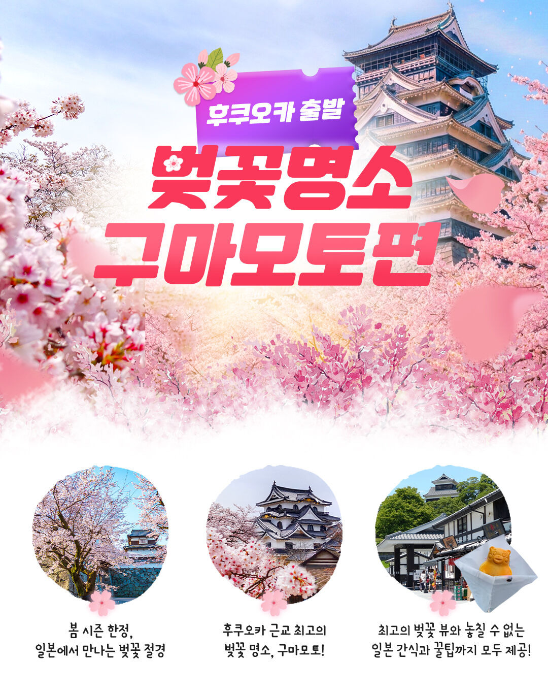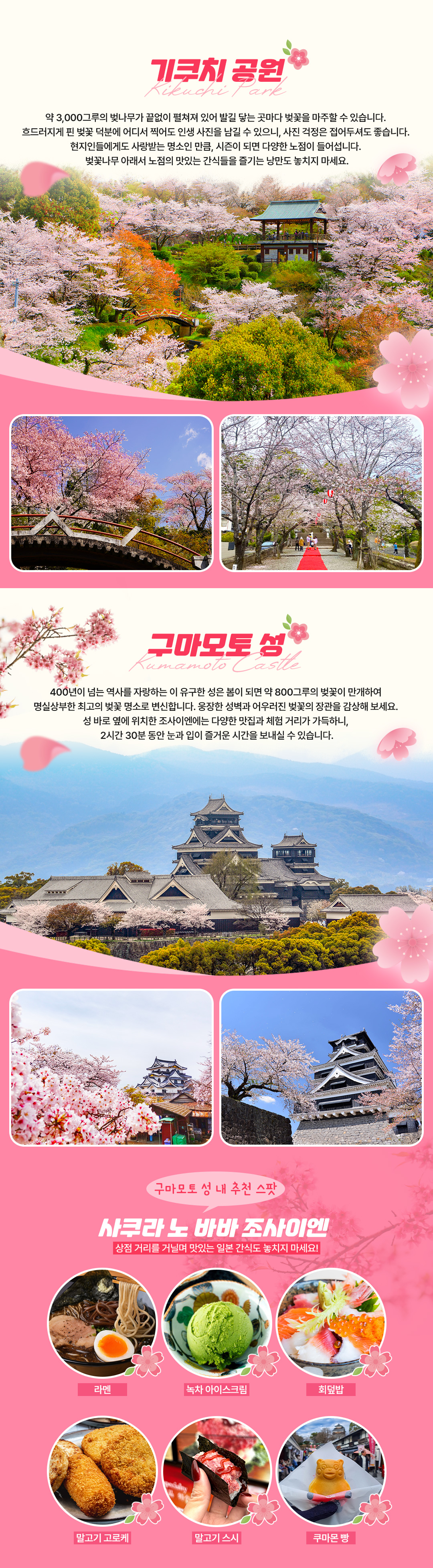 1년 중 오직 봄에만 만날 수 있는 벚꽃 시즌 한정, 후쿠오카 출발 구마모토 당일 벚꽃 여행