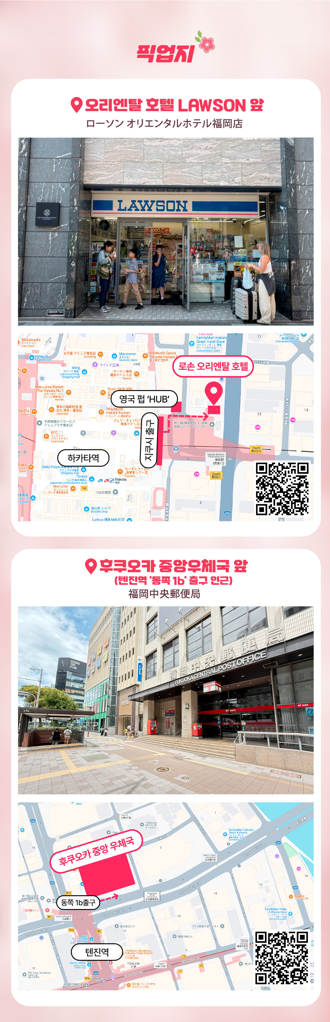 2. 후쿠오카 중앙우체국 앞 (텐진역 동쪽 1b 출구 근처) / 오전 8시 10분 출발