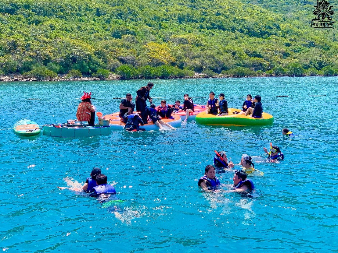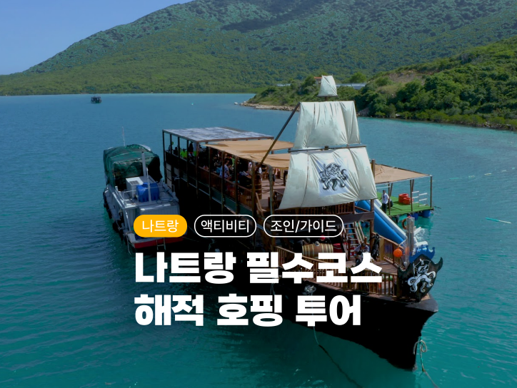 나트랑 해적 호핑 투어는 혼못섬 스노클링, 카약, SUP 보드 등 다양한 해양 액티비티를 한 번에 즐길 수 있는 투어예요. 맑고 푸른 바다 속에서 산호초를 감상하고, 선상 칵테일 파티와 푸짐한 현지식 점심도 포함되어 있어요. 자유로운 액티비티와 여유로운 휴식, 현지 감성까지 한 번에 담은 베스트 원데이 투어랍니다.