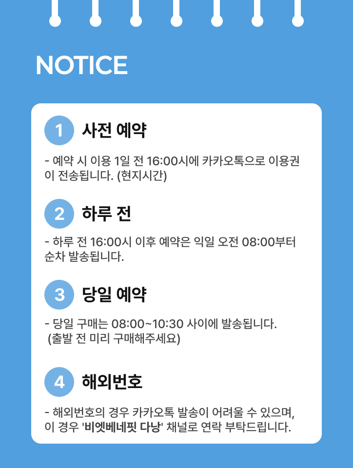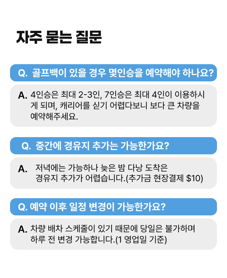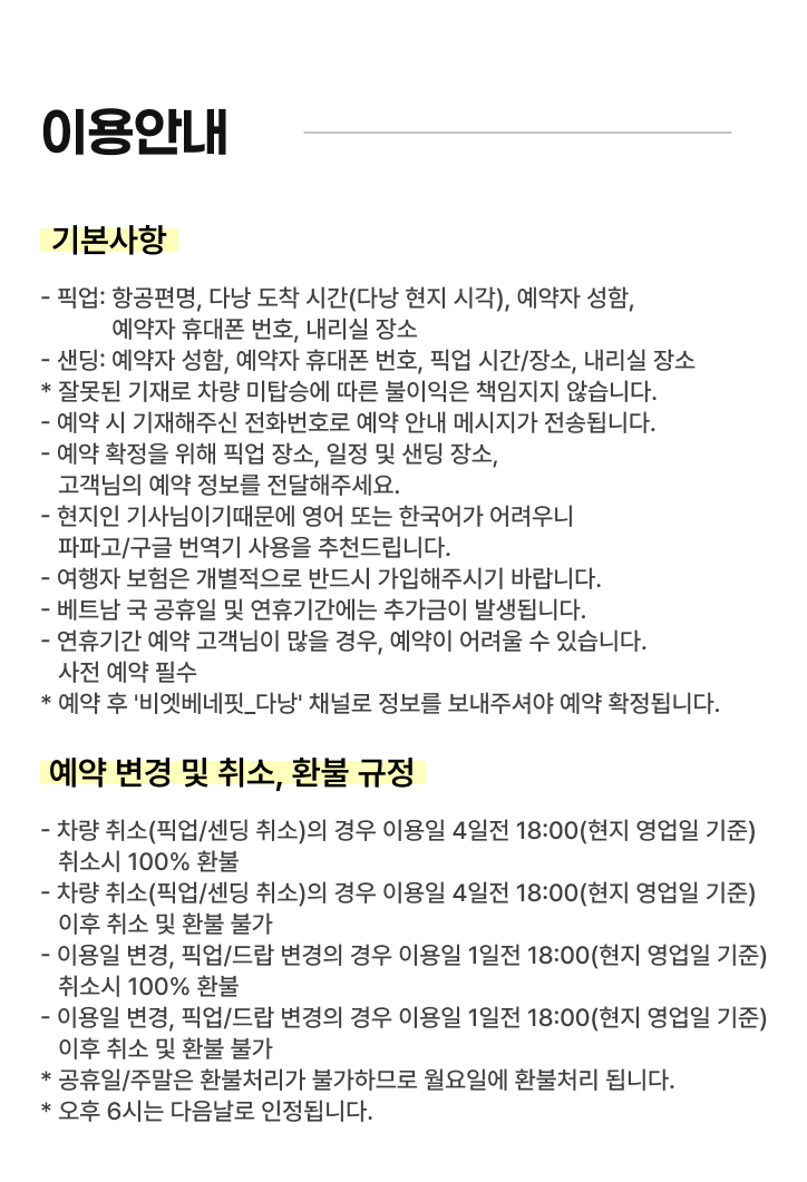 * 정확한 픽업 시간은 예약 확정 후 안내 드립니다.