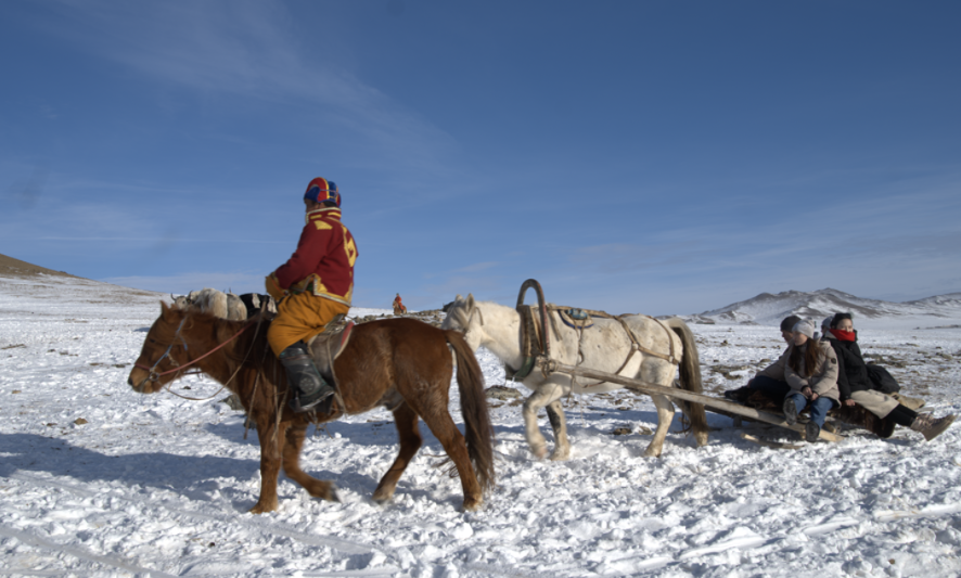 얼음낚시, 말썰매, 낙타 트레킹, 개썰매, 모래 썰매 등 계절별 체험을 골고루 경험해요.