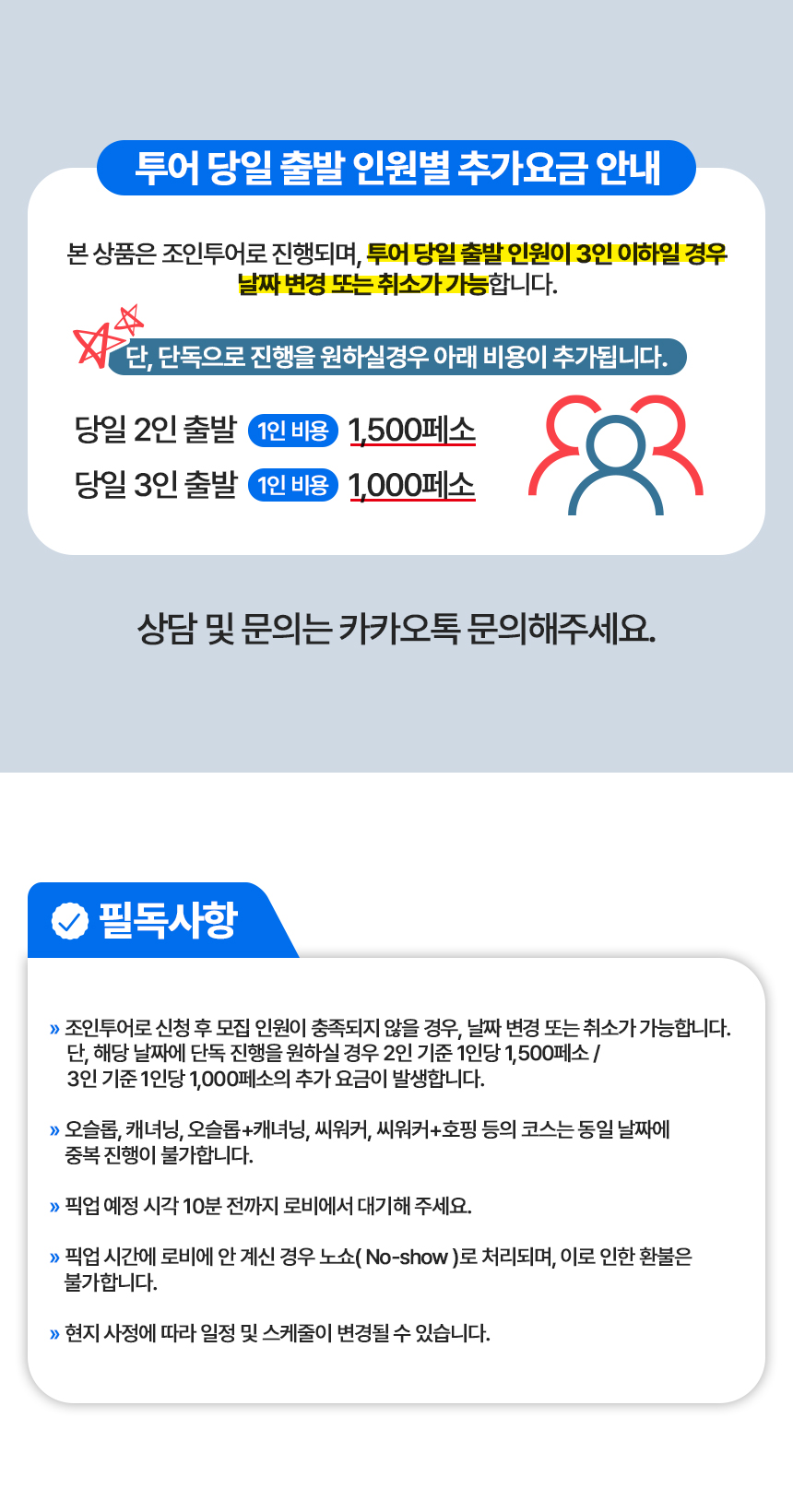 * 정확한 픽업 시간은 투어 전날 개별 안내드립니다.