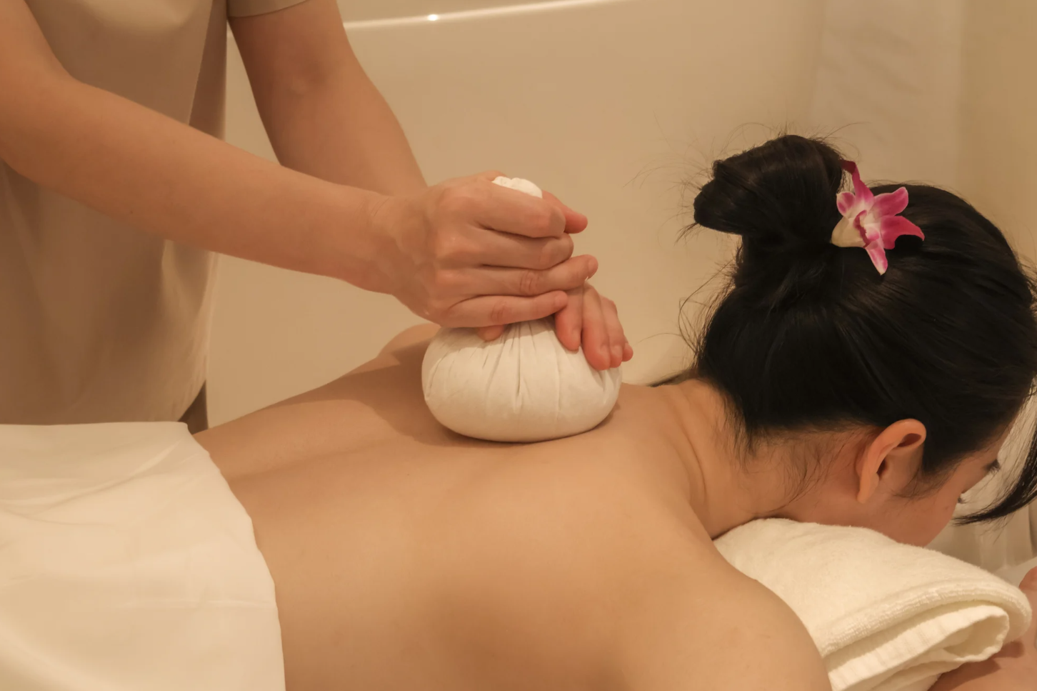 따뜻한 허브 볼로 근육 긴장 완화와 혈액순환 촉진을 해주는 마사지예요. 깊은 휴식과 피로 회복이 필요할 때 선택하면 좋아요.