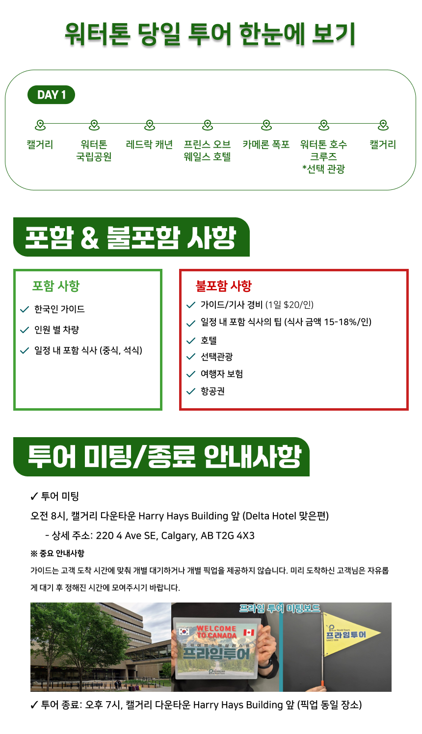 * 가이드는 고객 도착 시간에 맞춰 개별 대기하거나 개별 픽업을 제공하지 않습니다. 미리 도착하신 고객님은 자유롭게 대기 후 정해진 시간에 모여주시기 바랍니다.
