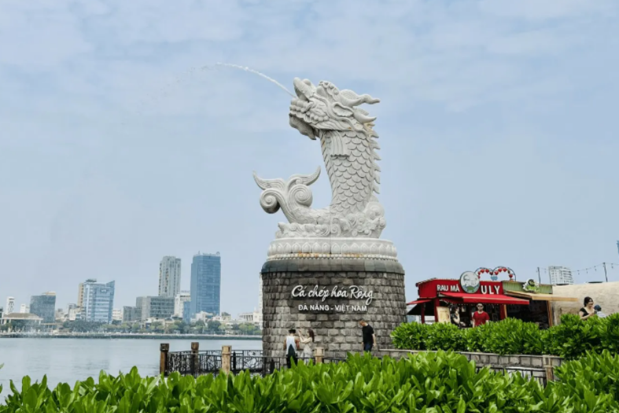 투어 중에는 '드래곤 브릿지'와 '잉어 용 동상'에서 멋진 사진을 남길 수 있어요. 다낭을 대표하는 랜드마크라 아오자이를 입고 찍으면 사진의 완성도가 훨씬 높아져요.