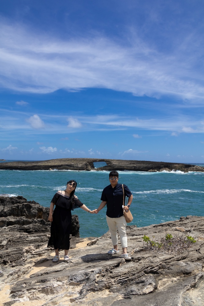 중간에 구멍이 뚫려있는 신비로운 무인도와 에메랄드 빛 바다의 색을 가지고 있는 북쪽 바다를 볼 수 있는 아름다운 장소예요.