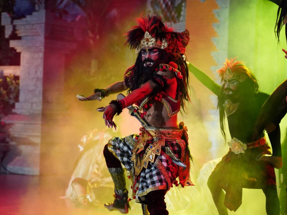Gayatri Show는 발리의 문화와 전통을 음악극 형식으로 웅장하게 표현한 공연이에요. 약 30분 동안 원형극장 무대에서 연극과 다채로운 퍼포먼스를 결합해 몰입감 있게 진행돼요. 전통 마을에서 태어나 자란 소녀 가야트리의 성장 이야기와 사랑, 이별, 시련을 중심으로 이야기가 펼쳐져요. 밝고 명랑한 가야트리의 모습과 함께 에그랑, 랑쿠 알루 같은 발리 전통 놀이도 스토리에 자연스럽게 녹아들어요. 발리 전통 음악과 화려한 무대 연출, 조명과 영상 효과가 어우러져 공연의 메시지를 깊이 있게 전달해요.