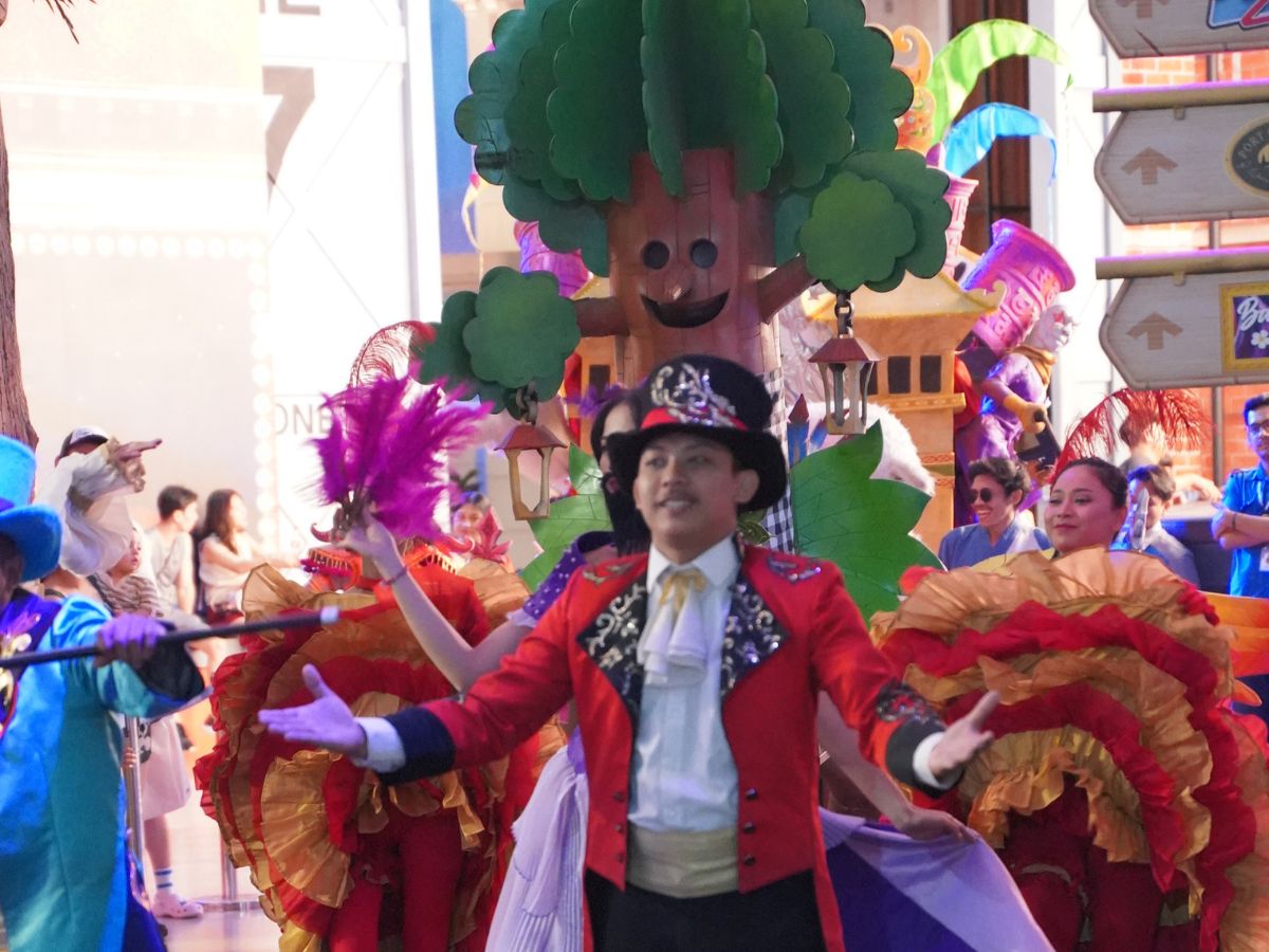 Dream Festival Parade는 카메라 존에서 액션 존까지 이어지는 퍼레이드로, 환상적인 캐릭터들이 함께 행진하며 펼쳐지는 공연이에요. 전통과 현대가 어우러진 독특한 의상을 입은 배우들이 인사를 건네며 상상과 꿈의 세계로 안내해요. 하누만, 바롱, 오고오고 같은 발리 전통 캐릭터부터 왕실 공주와 눈사람 캐릭터 등 현대적이고 이국적인 캐릭터까지 다채롭게 등장해요. 마칭밴드의 음악과 화려하게 장식된 퍼레이드 차량이 분위기를 한층 더 살려줘요. 공연이 끝난 뒤에는 퍼레이드 캐릭터들과 함께 사진 촬영도 즐길 수 있어요.