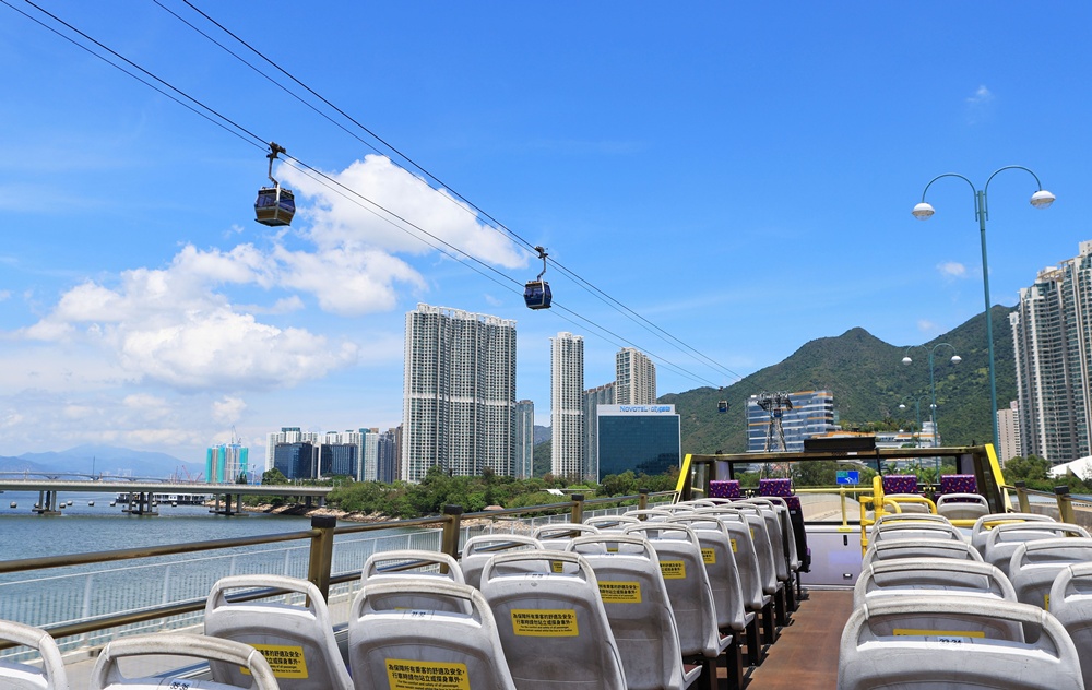 오픈탑 더블데커 버스 2층에서 가리는 것 없이 홍콩의 전경을 한눈에 담을 수 있어요.