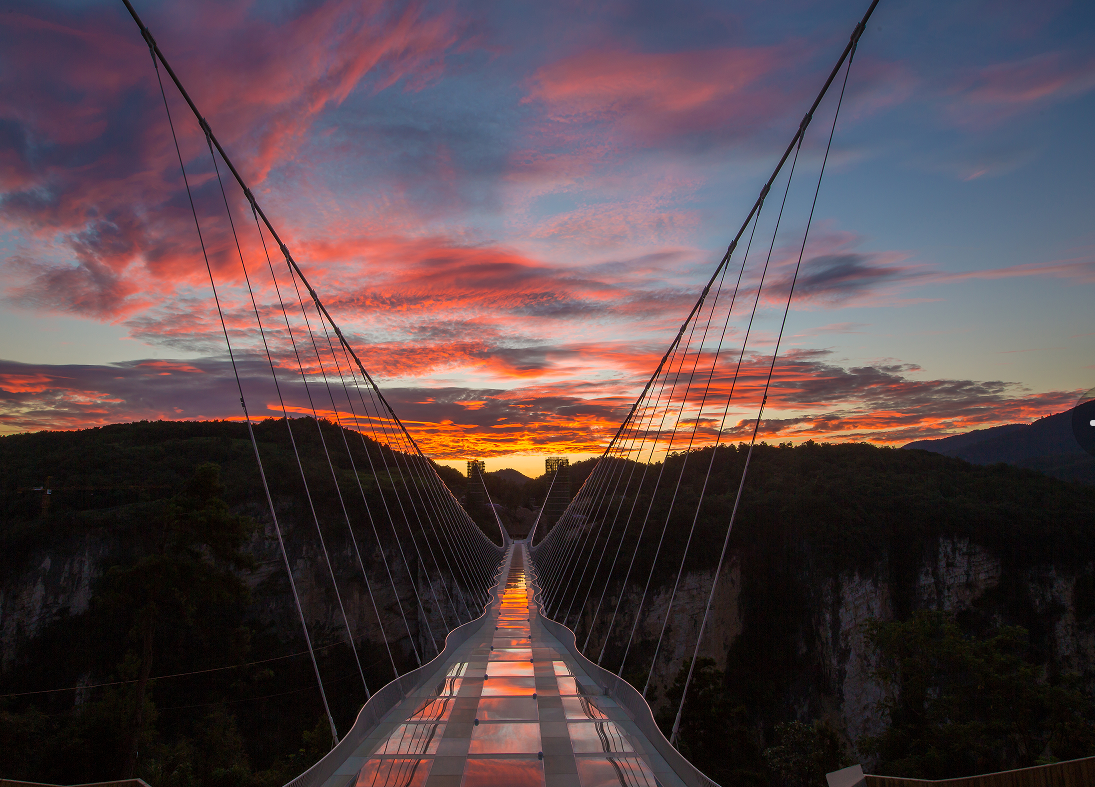 세계 최장 길이 케이블카를 타고 구름 위로 올라 장가계를 대표하는 성산을 만나보세요. 산을 관통한 거대한 천문동과 99개의 굽이진 산길은 보는 순간 감탄을 자아내며 여행의 마지막을 가장 강렬하게 장식해줘요.