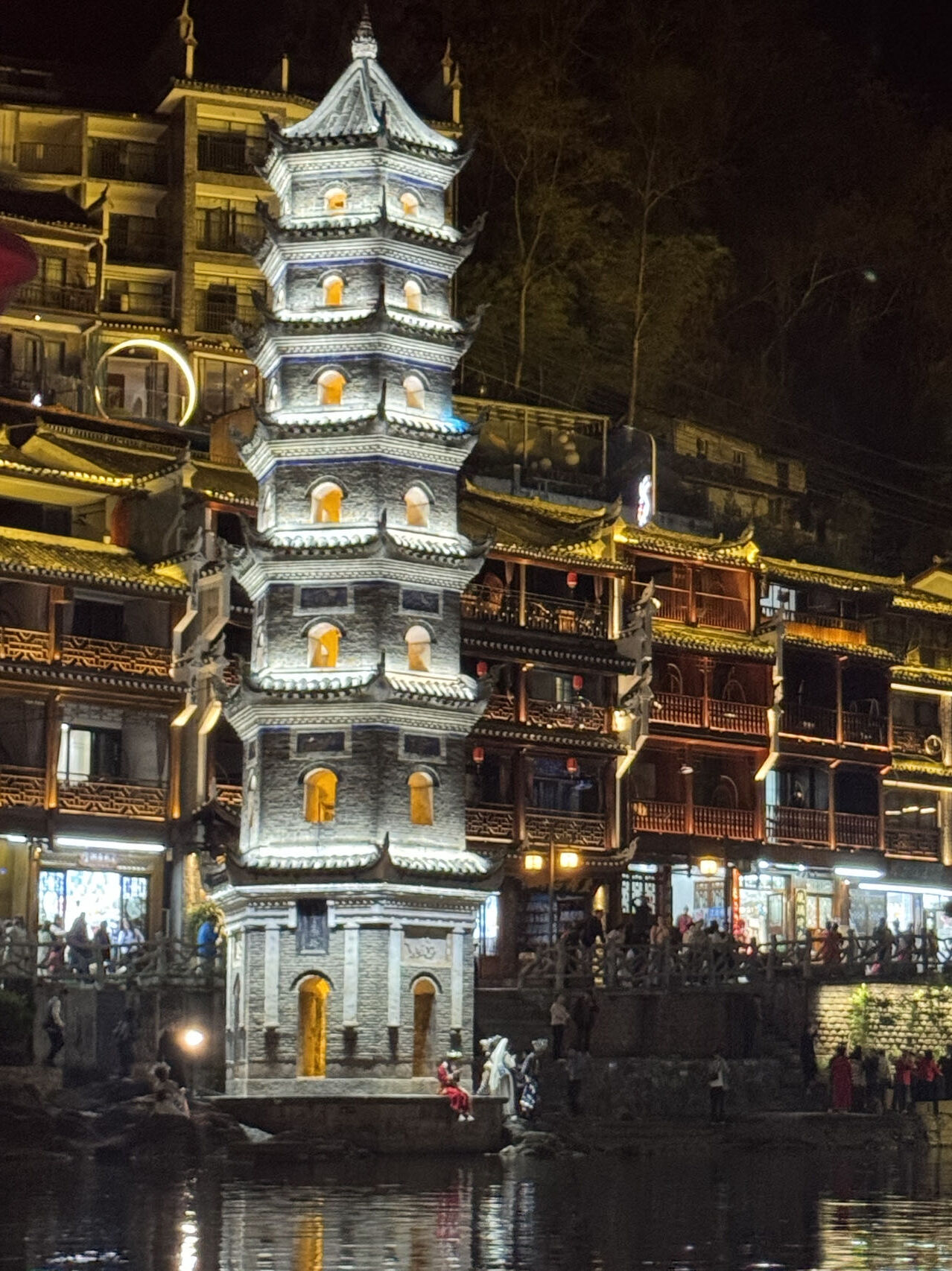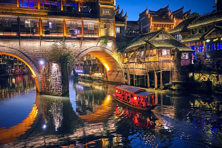 중국 4대 고성 중 하나로 불리는 봉황고성은 고요한 강을 따라 전통 가옥이 늘어서 있어 한 폭의 그림 같은 풍경을 만들어내요. 해 질 무렵 붉게 물드는 하늘과 함께 시작되는 야경은 특히 아름다워 많은 여행자들이 장가계 일정 중 가장 인상적인 순간으로 꼽아요.