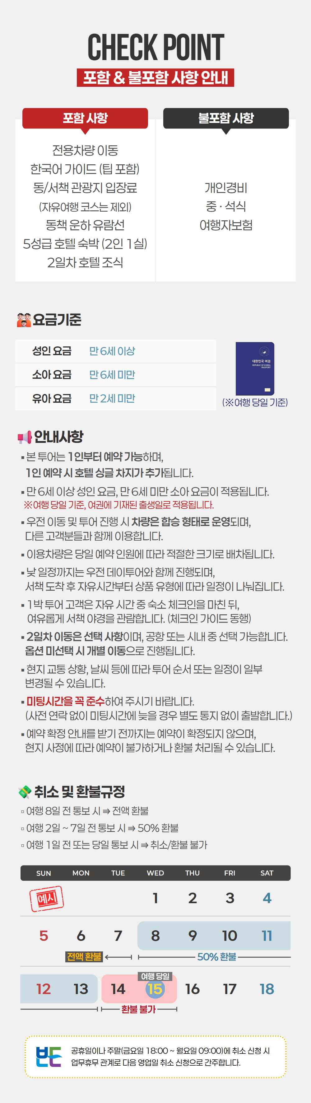 * 투어 1 ~ 2일 전 발송되는 '가이드 미팅 안내'에서 최종 미팅시간을 반드시 확인 바랍니다.