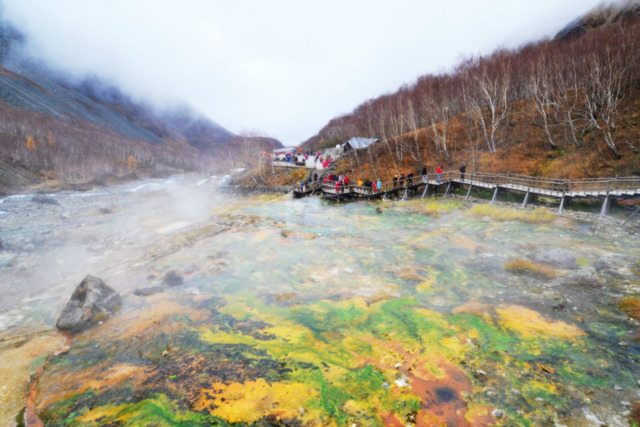 화산의 열기로 데워진 지하수가 지표면 위로 솟아오르는 독특한 자연 온천 지역을 둘러봐요. 김이 피어오르는 신비로운 풍경 속에서 백두산이 살아있는 화산 지형임을 직접 느껴볼 수 있어요.