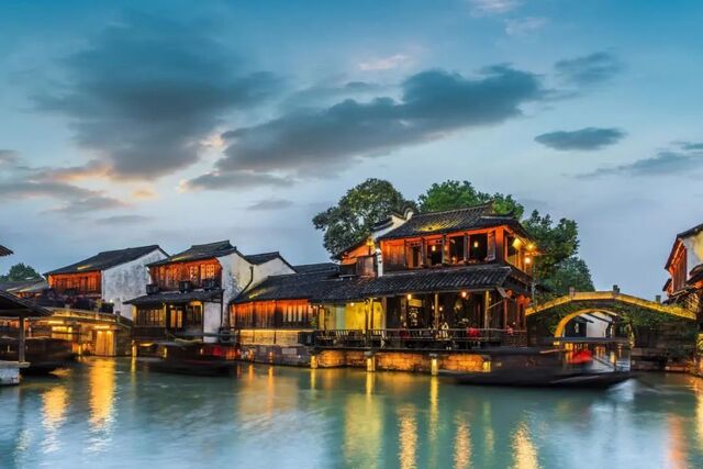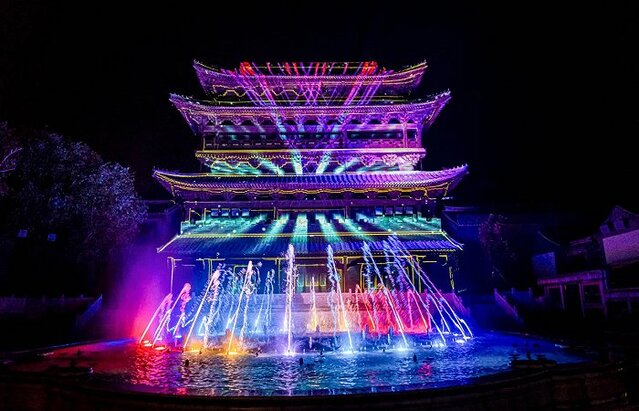 낮의 고북수진은 마치 옛 중국으로 들어온 듯한 분위기를 전합니다. 산과 물, 전통 건축물이 조화를 이루는 풍경 속에서 사마소 소주방, 염색방 등 다양한 전통 체험 공간을 둘러보며 여유로운 시간을 보낼 수 있어요. 해가 지면 분위기는 완전히 달라집니다. 홍등이 하나둘 켜지고 수로 위로 빛이 번지며 마을 전체가 거대한 야경 테마파크처럼 변해요. 물결 위로 반사되는 불빛과 함께 분수쇼와 드론쇼가 더해지면, 고북수진의 밤은 그 자체로 하나의 공연이 됩니다.
