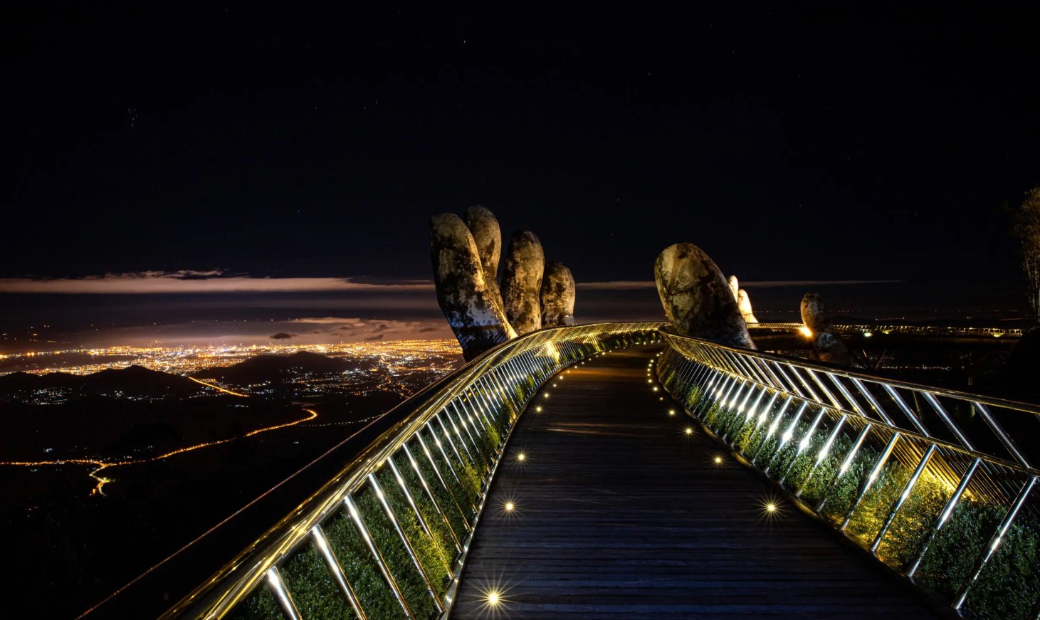 그리고 해가 지면, 진짜 하이라이트 바나힐 야경이 시작돼요! 해발 높은 곳에서 조명에 반짝이는 골든 브릿지와 유럽풍 마을, 음악이 흐르는 광장은 낮과는 또 다른 로맨틱한 분위기를 선사해요. 특히 밤의 바나힐은 거대한 야경 포토존 같아서 인생샷 장소로도 인기가 많답니다.