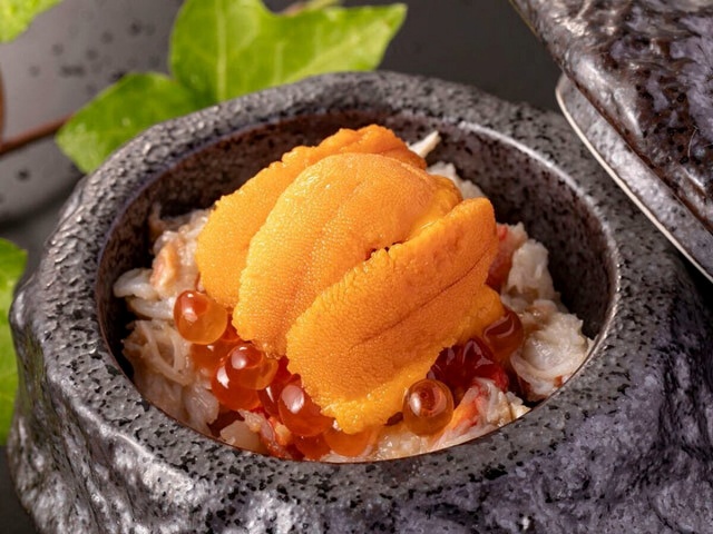 Sea Urchin & Salmon Roe Mini Rice Bowl, Grilled King Crab