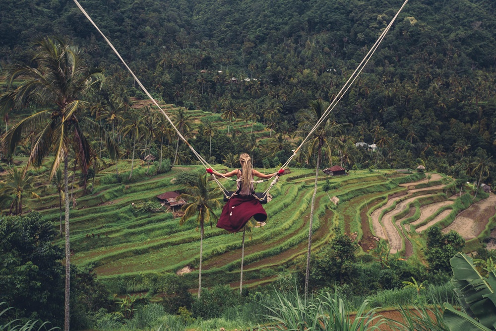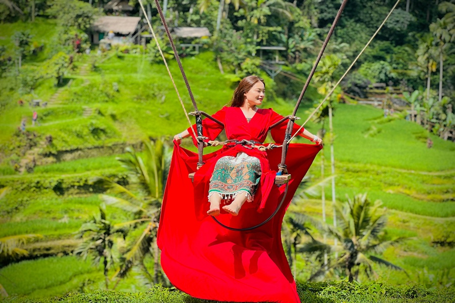 뜨갈랄랑 계단식 논을 배경으로 스윙(선택)을 타고 향긋한 루왁 커피를 맛봐요.