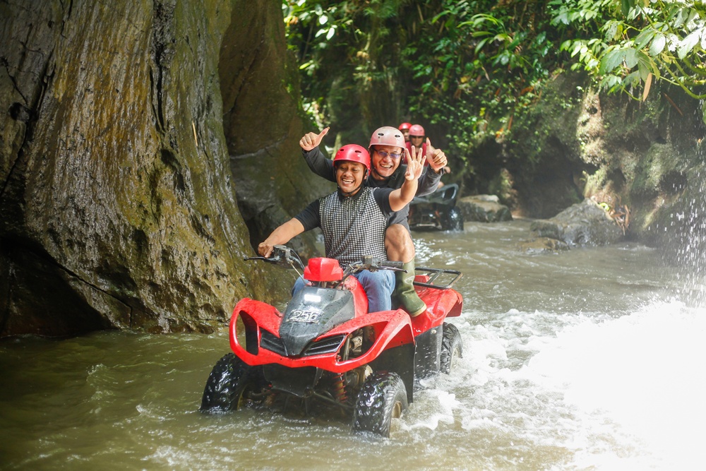 우붓의 깊은 숲속과 오프로드를 ATV로 누비며 일상의 스트레스를 날려버리세요. 헬멧과 장화 등 모든 안전 장비가 완비되어 있으며, 전문 가이드가 동행하여 거친 길도 안심하고 도전할 수 있습니다.