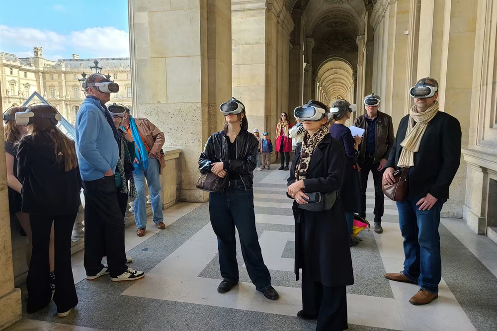 현재의 루브르 피라미드와 가상 현실 속 과거의 궁전 모습을 현장에서 바로 대조하며 역사의 변화를 한눈에 느껴보세요.