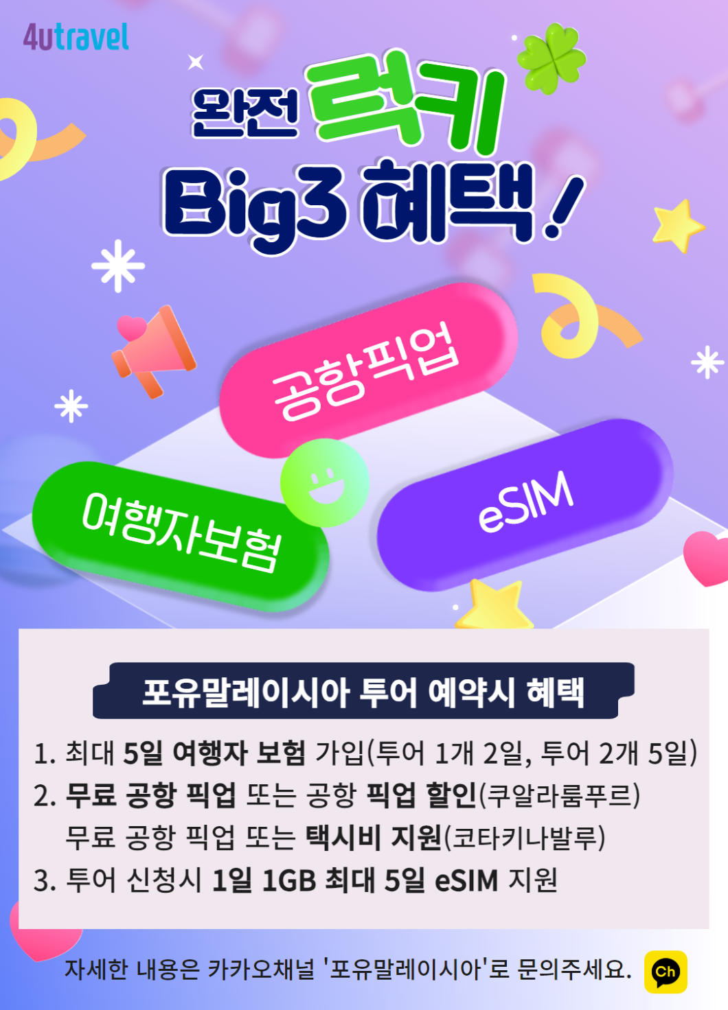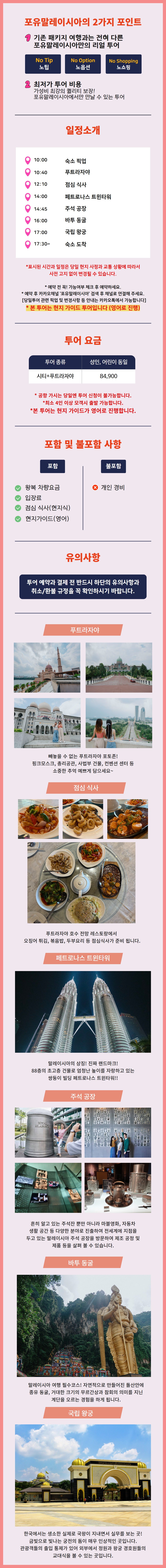 * 예약 후 카카오톡 '포유말레이시아' 채널로 연결해주세요. 채널을 통해 당일 투어 관련 픽업, 변경 사항 등 안내해 드립니다.