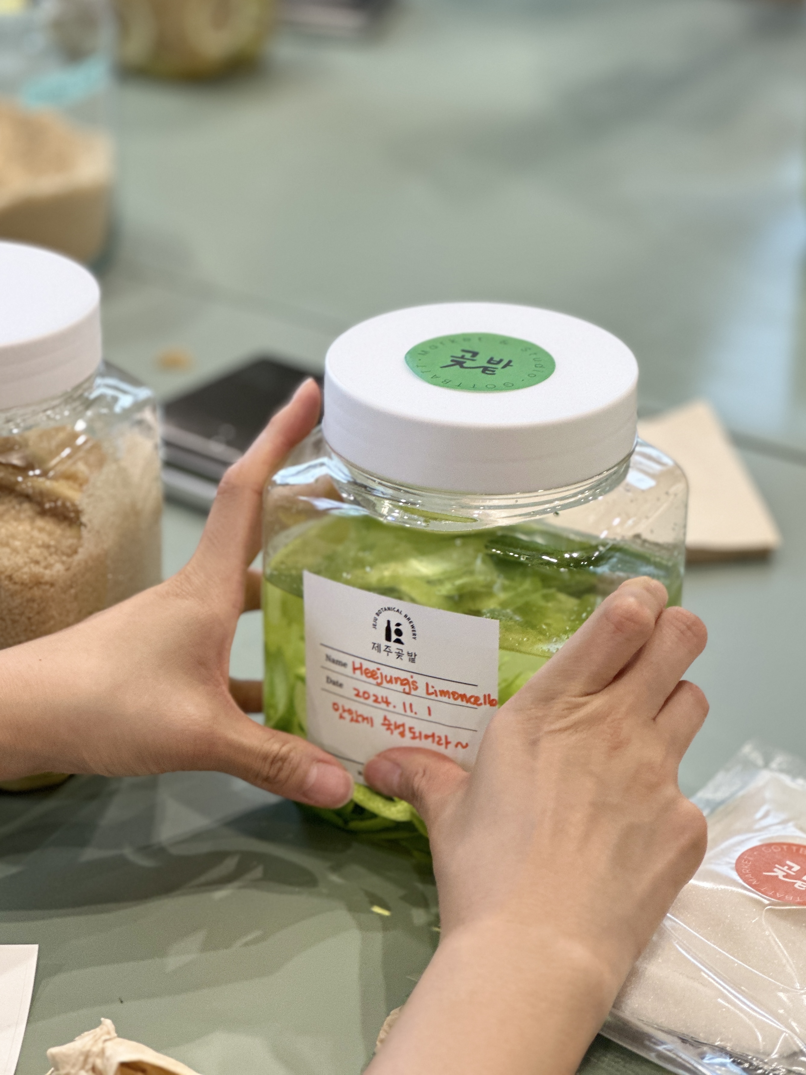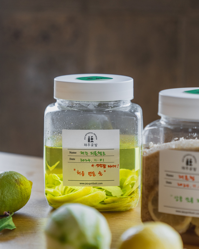 리몬첼로뿐 아니라 달콤한 레몬청도 함께 만들어요. 이번에 배운 방법을 활용하면 레몬은 물론, 계절마다 나는 제주 시트러스 과일로 다양한 리큐르를 손쉽게 만들 수 있어요. 한켠에 색색의 술병이 하나씩 늘어가는 재미를 느끼며, 집에서도 이어갈 수 있는 취미로 남게 됩니다.
