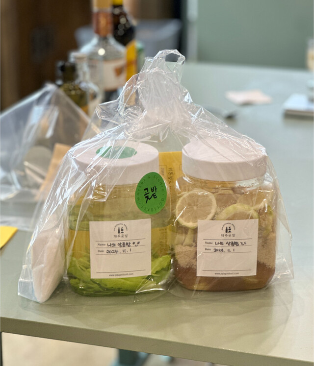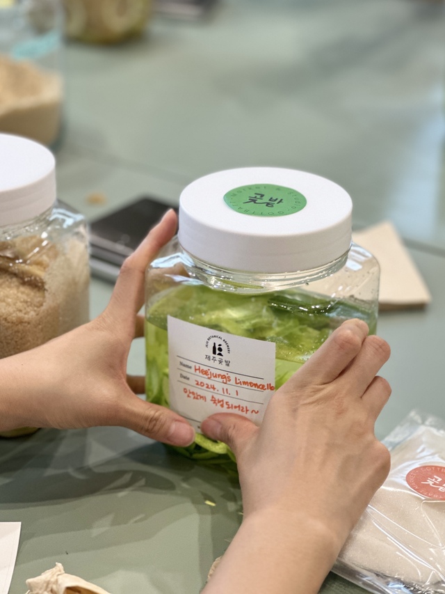 체험 후에는 리몬첼로 1L 한 통과 레몬청 1kg 한 통을 가져갈 수 있으며, 제주곶밭 리몬첼로로 만든 하이볼 시음도 제공됩니다. 단순한 기념품이 아니라, 집에 돌아간 뒤에도 제주를 다시 떠올리게 해주는 가장 특별한 여행의 기록이 되어줄 거예요. 만들어가신 완성품은 기내반입이 가능합니다. 기내로 들고 타시는걸 추천드려요!