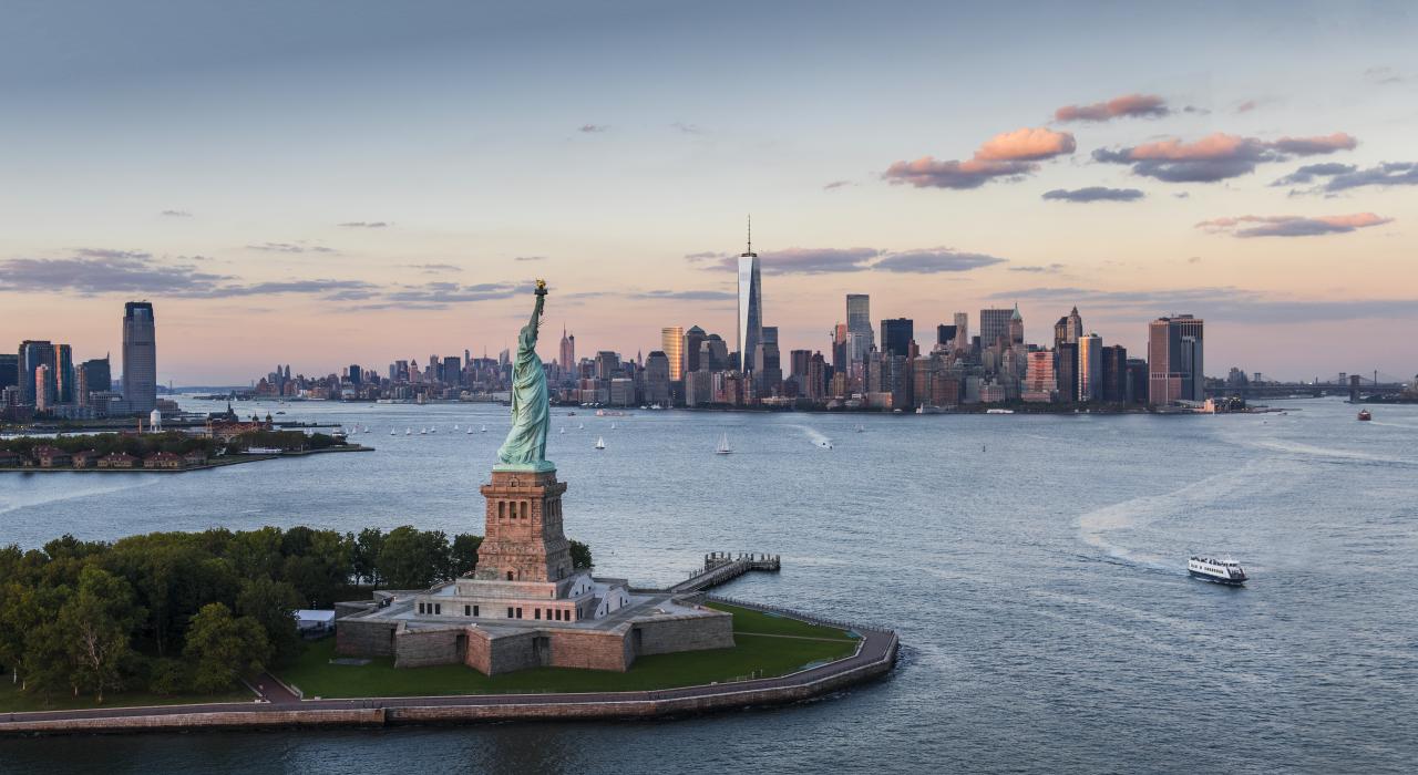 페리를 타고 미국의 가장 유명한 상징을 가까이서 볼 수 있어요. (유람선 비용 별도)