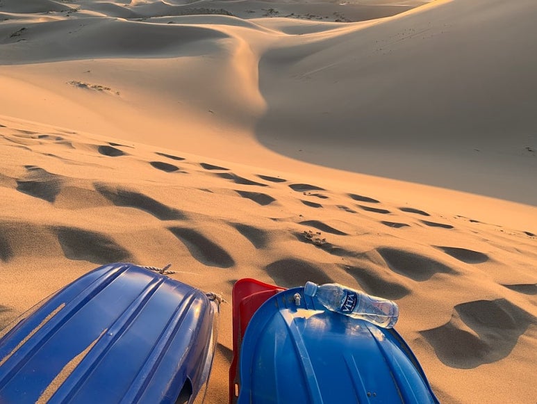 높이 수십 미터의 거대한 모래언덕이 이어지는 고비사막의 대표 사막 지형으로 낙타 체험과 모래 썰매를 즐길 수 있어요.