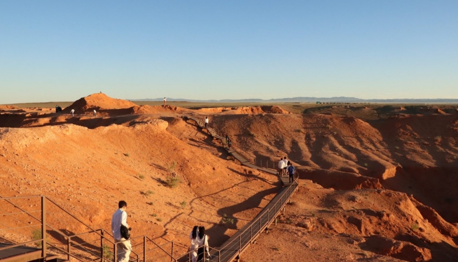 거대한 흰색 석회 절벽이 계단처럼 이어지는 고비사막의 대표 자연 절경을 감상하는 곳이에요.
