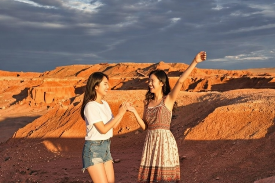 하얀 석회 절벽이 장관을 이루는 차강소브라가, 공룡 화석 발견지로 유명한 붉은 절벽 바얀작, 거대한 모래언덕이 펼쳐진 홍고린 엘스, 얼음 협곡이 신비로운 욜린암, 그리고 기암괴석이 장관을 이루는 바가가즈링촐로까지 고비사막을 대표하는 핵심 명소를 모두 방문해요. 사막, 협곡, 절벽, 암석 지형 등 다양한 자연 풍경을 한 여행에서 경험할 수 있어 몽골의 대자연을 더욱 깊이 느낄 수 있어요. 낮에는 웅장한 자연을 탐험하고 밤에는 별이 가득한 몽골 사막의 밤하늘을 감상하며 특별한 시간을 보내요.