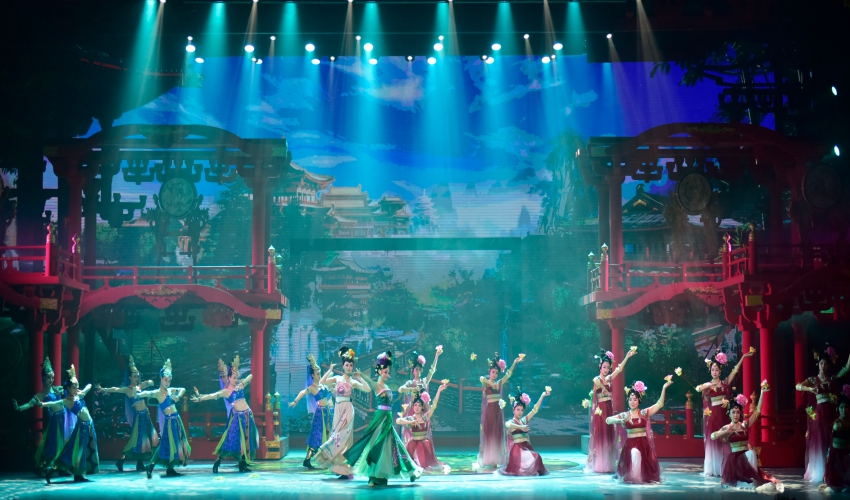 화려한 의상과 우아한 동작으로 당나라 황실 문화를 보여주는 대표 공연이에요.