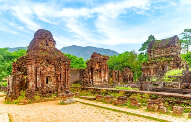 유네스코 세계문화유산인 미선의 붉은 벽돌벽을 따라 걸어보세요. 산과 계곡이 빚어낸 천혜의 자연환경 속에서 고대 참파 문명의 경이로운 예술성을 마주할 수 있습니다.