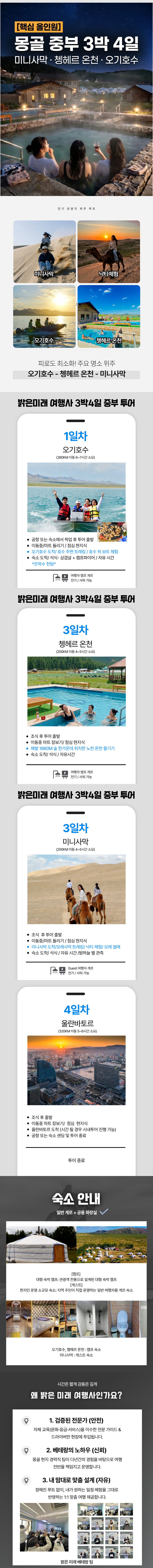 [밝은미래] [3박4일] 몽골 중부 오기호수 & 쳉헤르 온천 & 미니사막 투어